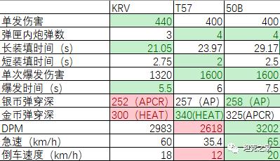 作为一款弹匣车,其252(AP)/300(HEAT)的穿深,和35s长装填、3秒短装填为人诟病。而在《坦克世界》的最新版本中,KRV得到了一些数据上的改动: