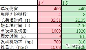 弹匣内弹药数从4发改动为3发,单发伤害从400加强至440,长装填时间从32.31s加强至21.05s,短装填时间从3s加强至2.75s,机动性增强,这一系列的改动,使KRV的DPM从一开始的2324一跃升至2983(无配件情况下)。虽然其单轮爆发的总伤害有一定的下降(1600下降至1320),但单次爆发所需时间大幅缩短。