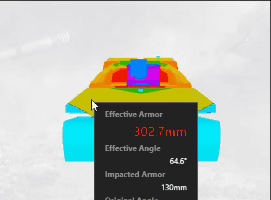重头戏来了,257工程的侧面装甲足有130毫米,并且采用了“船”型车体的设计。这使得它的侧面也是两个相接的大斜面,在摆出一定角度后可以说是近乎“无敌”的防御,除了HE没有人可以让你掉血。履带上沿那一部分装甲如果角度合适也会被强制跳弹,在面对高穿深HEAT弹时选择角度需要更谨慎一些。
