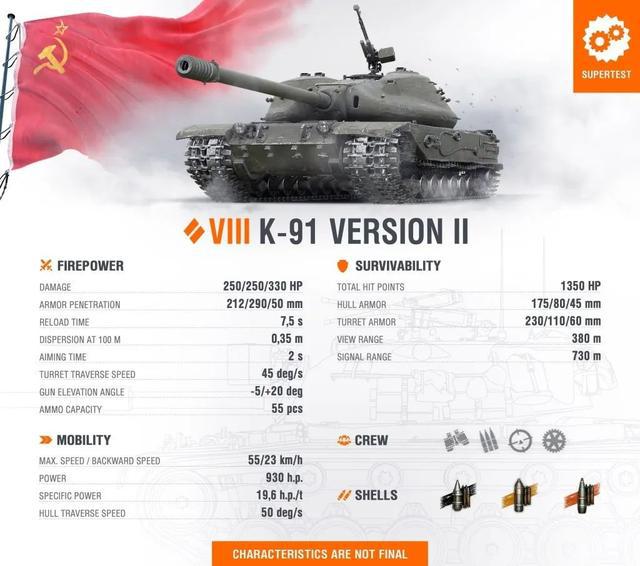 说到游戏里的K-91家族,我们应该都不陌生,K-91-1型在分线后默默无闻的担任着S系中坦3线的顶级车,K-91-2型在今年4月份曾经放出消息要作为9级特种中坦出现,但在半年后开发者们改变了主意,它似乎要作为8级中坦重现江湖了!