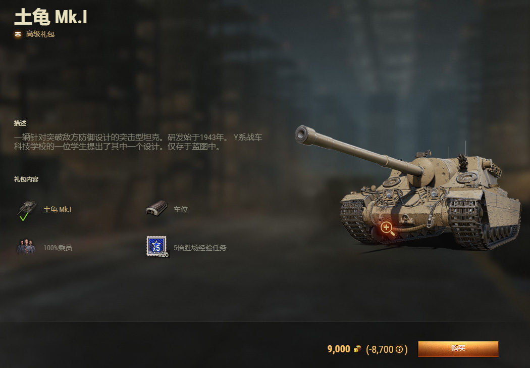 Hello~ 大家好~ 我是你们的好朋友“首胜打一宿”昨天到今天的特惠礼包卖的是国服第一次出现的英国8级TD——土龟MK.I,所以今天咱们就说他了!