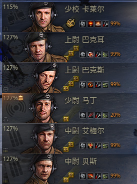 这是一批手打的FV217乘员,基本上就这么配,也没啥好改的,这里注意一下,由于这辆车本身的原因,修理技能优先级比隐蔽高!